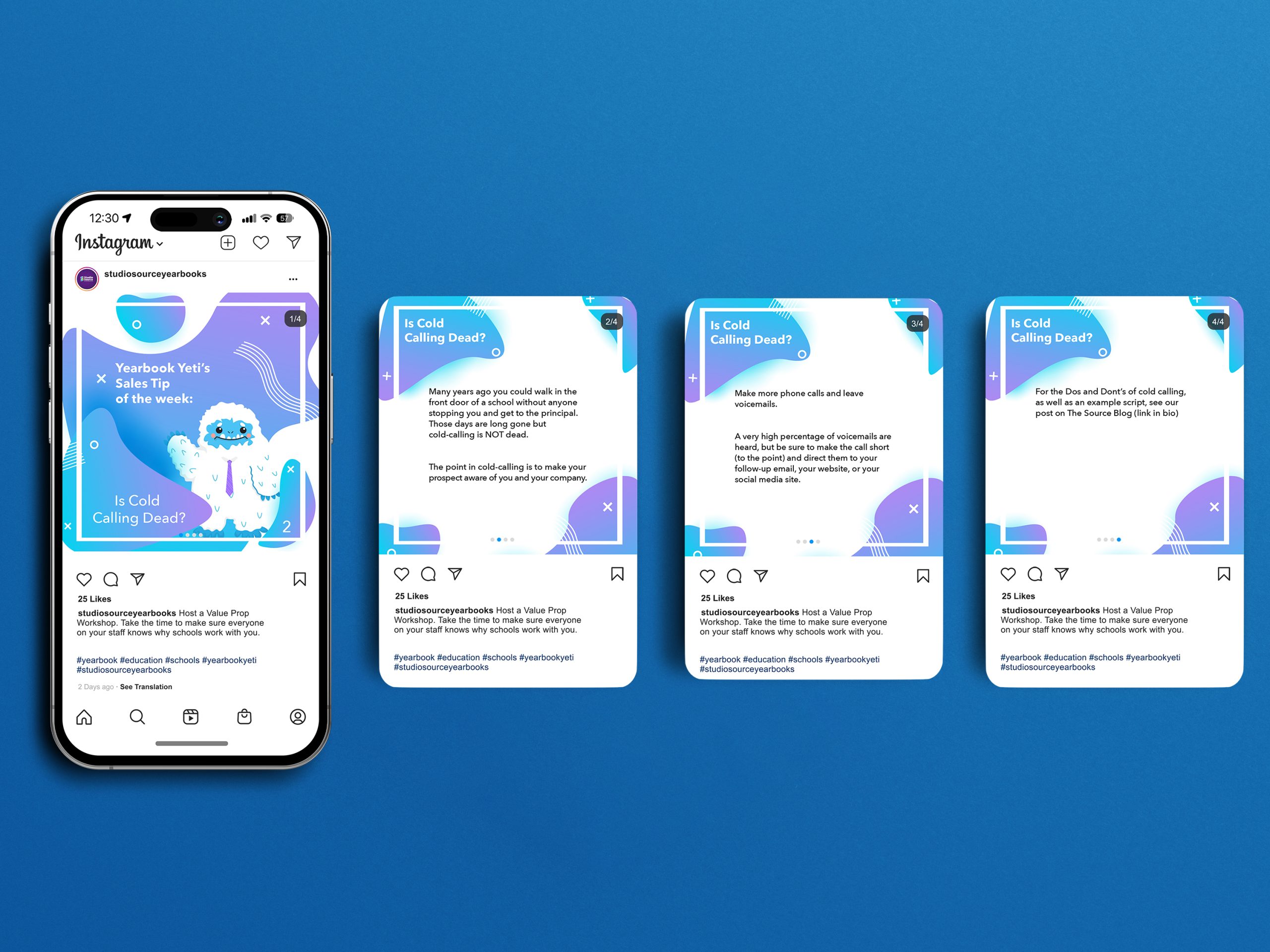 The cover gallery was one of the bigger projects I worked on durning my time at Studio Source. The idea behind it was that customers could scroll through the gallery, choose a cover they wanted, and request small design changes such as colors or fonts. I would then upload the image into the software they were using to build their yearbooks or email them the design if they were using their own. This was made to be a quick, easy, and free option for customers where they don’t have to pay per hour unlike if they went with the custom cover option.